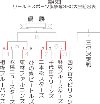 朝日が丘ルーキーズ・上南久保ビ連合・田名中央インパルス・二本松スターズ・ひのきビートルズ・双葉ニュースターズ・宮上ファイターズ